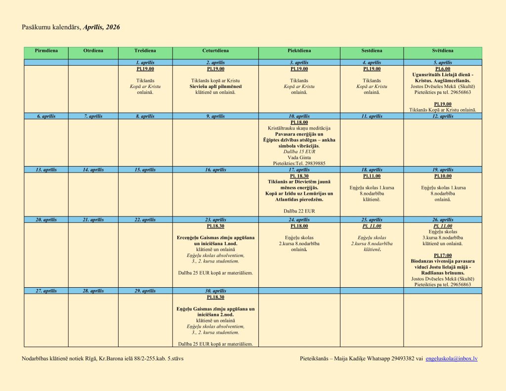 Aprīļa nodarbības