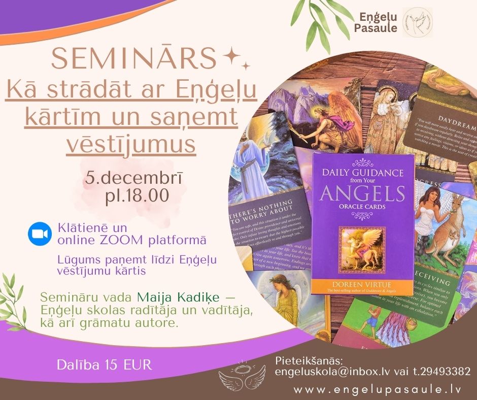 Seminārs būs klātienē Gaismas centrā Eņģeļu pasaule, notiks arī onlaina tiešraide, kā arī būs ieraksts.