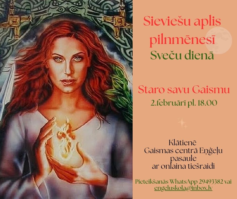 Esot kopā viena ar otru un ar minētām Dievietēm, veidosim sieviešu apli, aizdegsim sveces gan telpā, gan sevī, lai nostiprinātos Gaismas spēkā un pārliecībā un caur šo atjaunotni dotos pretī jaunam pavasarim.